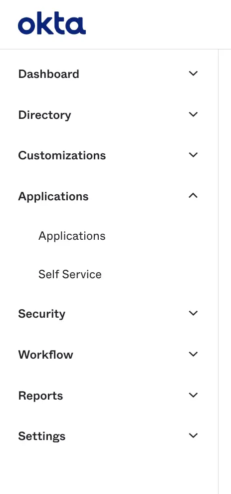 - Login to your Okta account and navigate to the Okta dashboard. In the sidebar, click on “Applications”