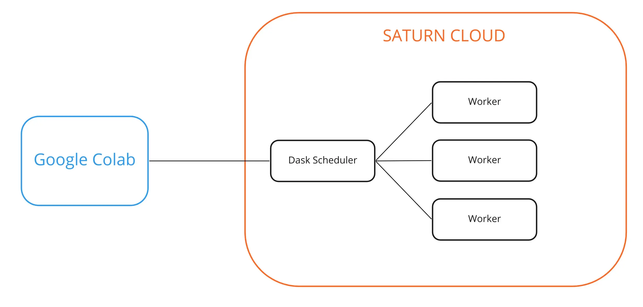 Saturn Cloud is a platform for data scientists to easily work—allowing them to start and stop data science resources, use GPUs for machine learning, and run distributed code through Dask. Saturn Cloud is available to connect to through all major cloud providers, and even directly from running Python on a laptop. For Google Colab, you can create a notebook that uses Dask through Saturn Cloud. You could also connect from any GCP service that can host Python.